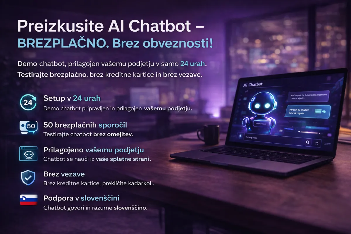 Preizkusite demo chatbot, prilagojen vašemu podjetju - pripravljen v 24 urah.